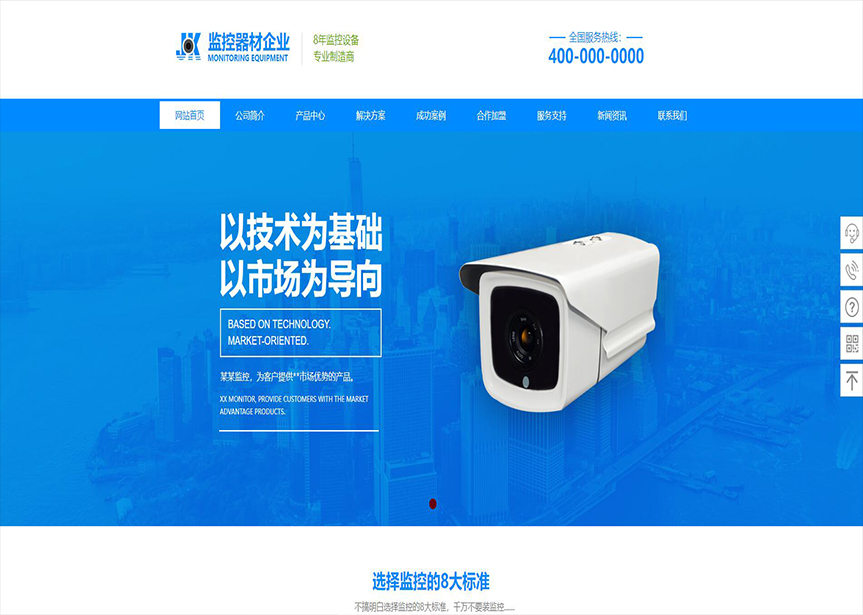 首頁 / 安防、監(jiān)控器材 / (帶手機版數(shù)據(jù)同步)自適應(yīng)安防監(jiān)控器材類藍色網(wǎng)站模板